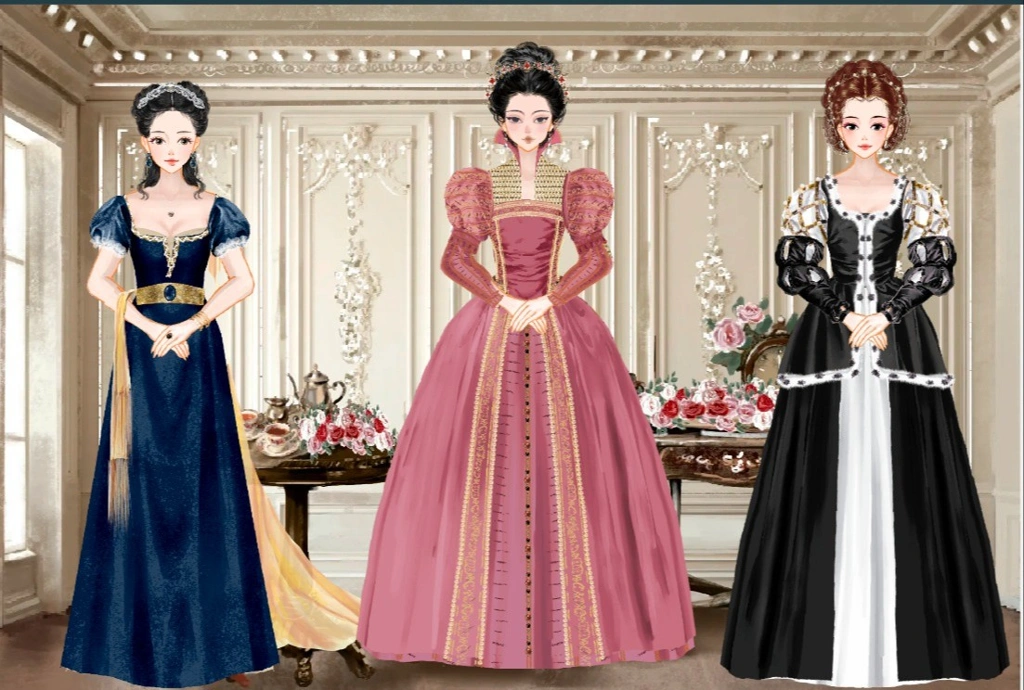服装来自一些世界著名的欧洲绘画;服装有欧洲不同时期的风格,所以每个人都可以随意混搭。欧洲古典装扮游戏,女孩游戏。