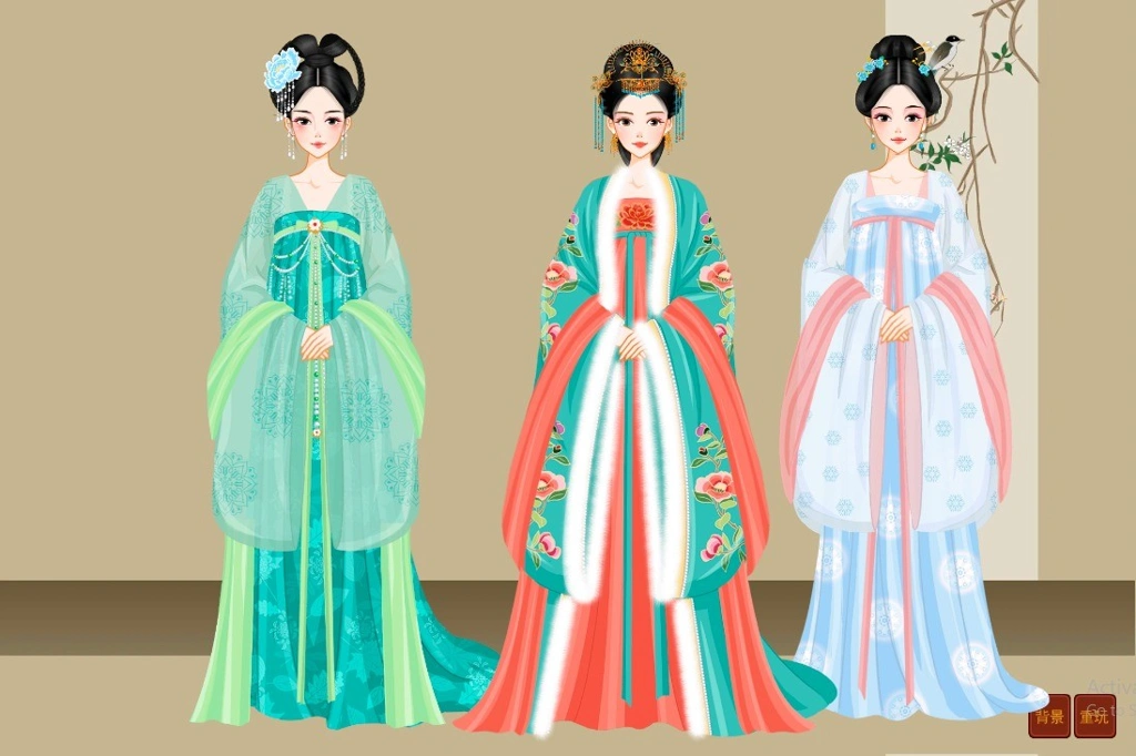 明代和唐代服装,汉服,中国历史装扮游戏,女孩游戏。